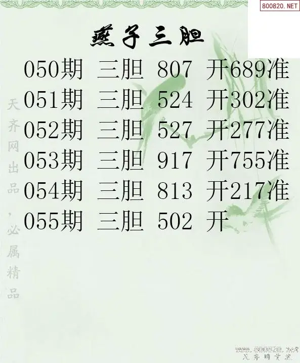 26055期燕子三胆3d胆码图谜-天齐原创
