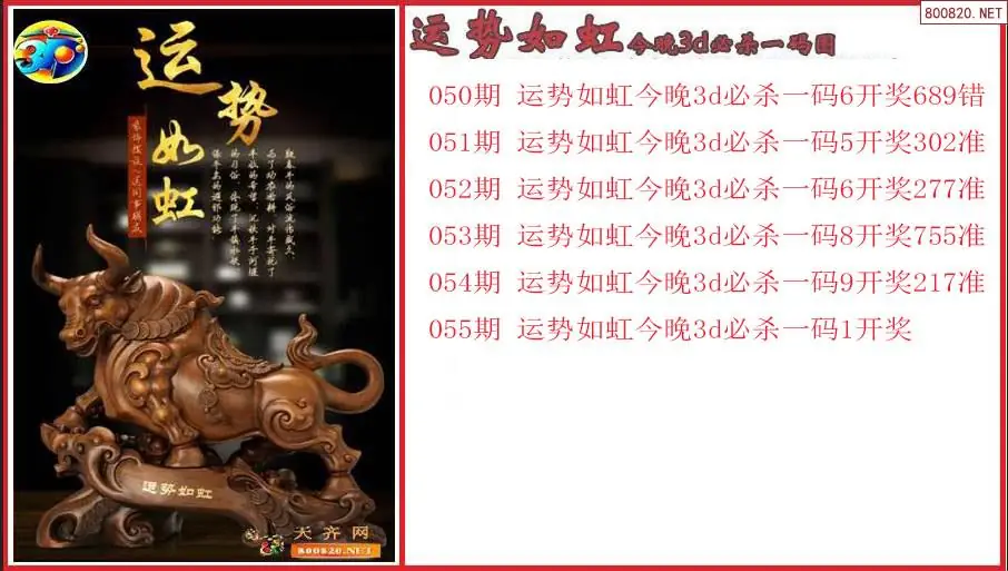 运势如虹2026055期今晚3d必杀一码图(原创)