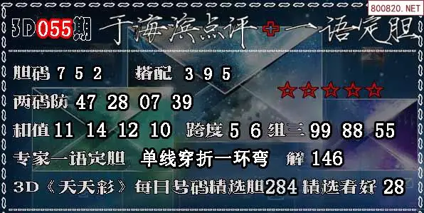 3D 《天天彩》每日号码精选胆284 精选看好28
