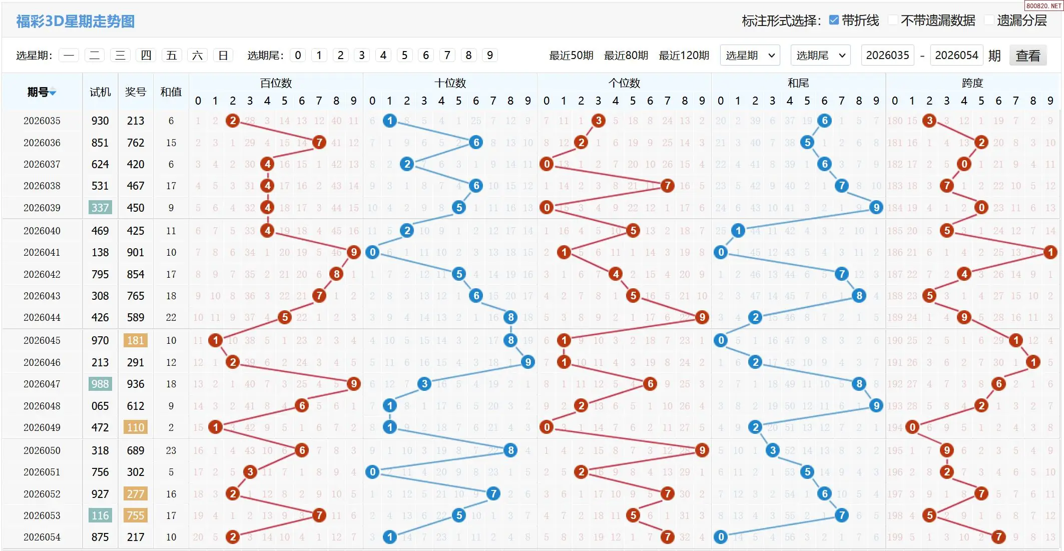 2026055期福彩3D基本走势图如下: