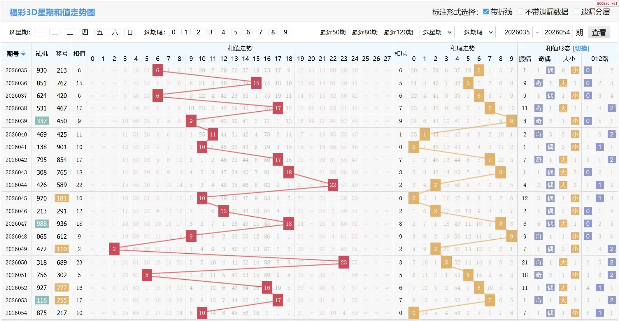 2026055期福彩3D和值和尾走势图如下: