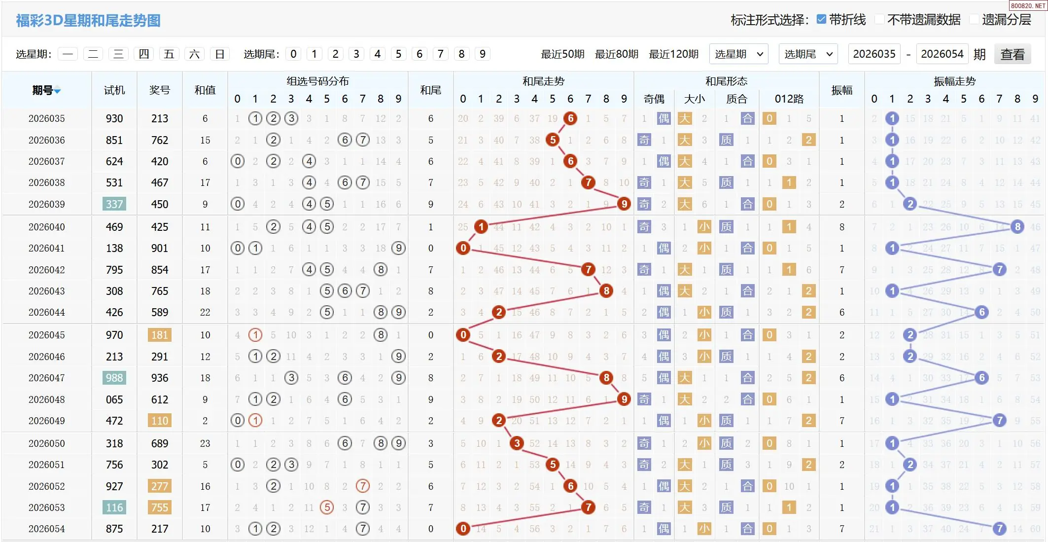 26年054期福彩3D试机号:875