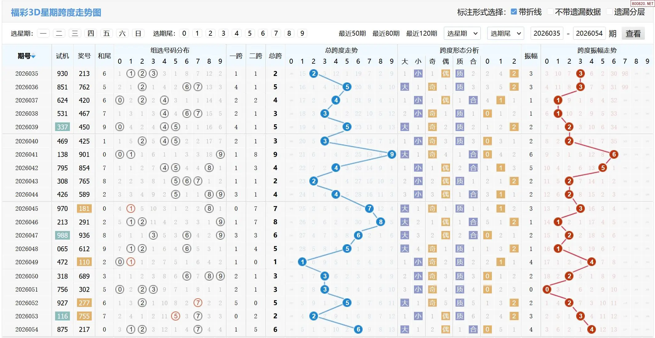 2026055期福彩3D跨度走势图如下: