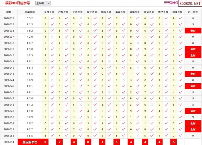 26055期彩宝贝福彩3D百十个位杀号