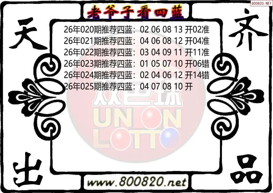 老爷子26年025期看双色球四蓝图谜