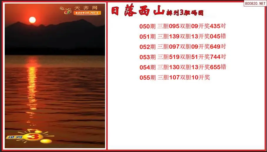 日落西山2026055期排列3胆码图谜(原创)