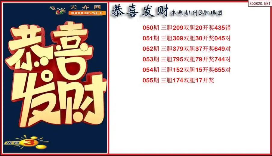 恭喜发财2026055期本期排列3胆码图(原创)