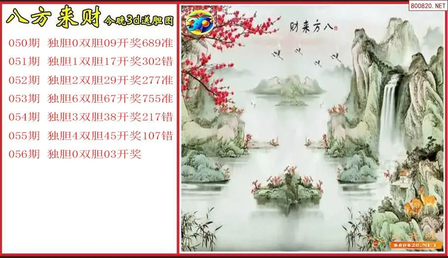 八方来财2026056期今晚3d送胆图(原创)