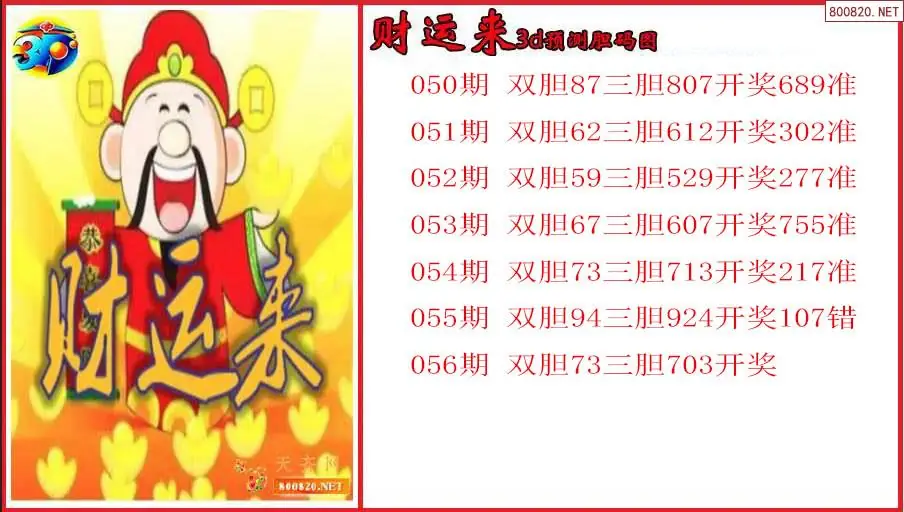 财运来2026056期3d预测胆码图(原创)
