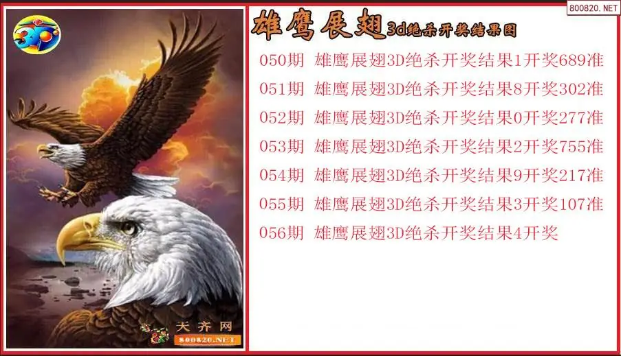 雄鹰展翅2026056期3d绝杀开奖结果图(原创)