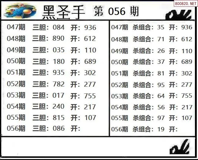 圣手图26056期黑圣手三胆+杀组合图谜