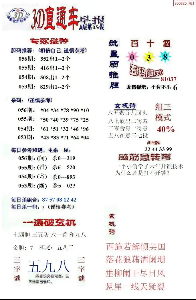 26年056期福彩3D直通车早报ABCD版