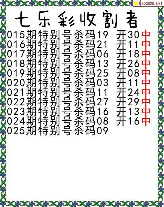 七乐彩26年025期收割者特别号杀码图迷
