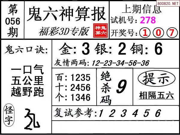 鬼六图26056期鬼六神算报+鬼六胆码图迷