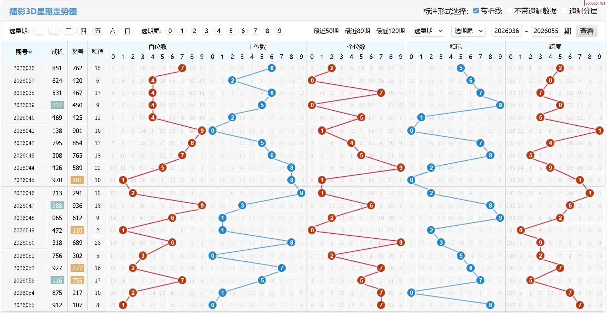 26年055期福彩3D开机号:820