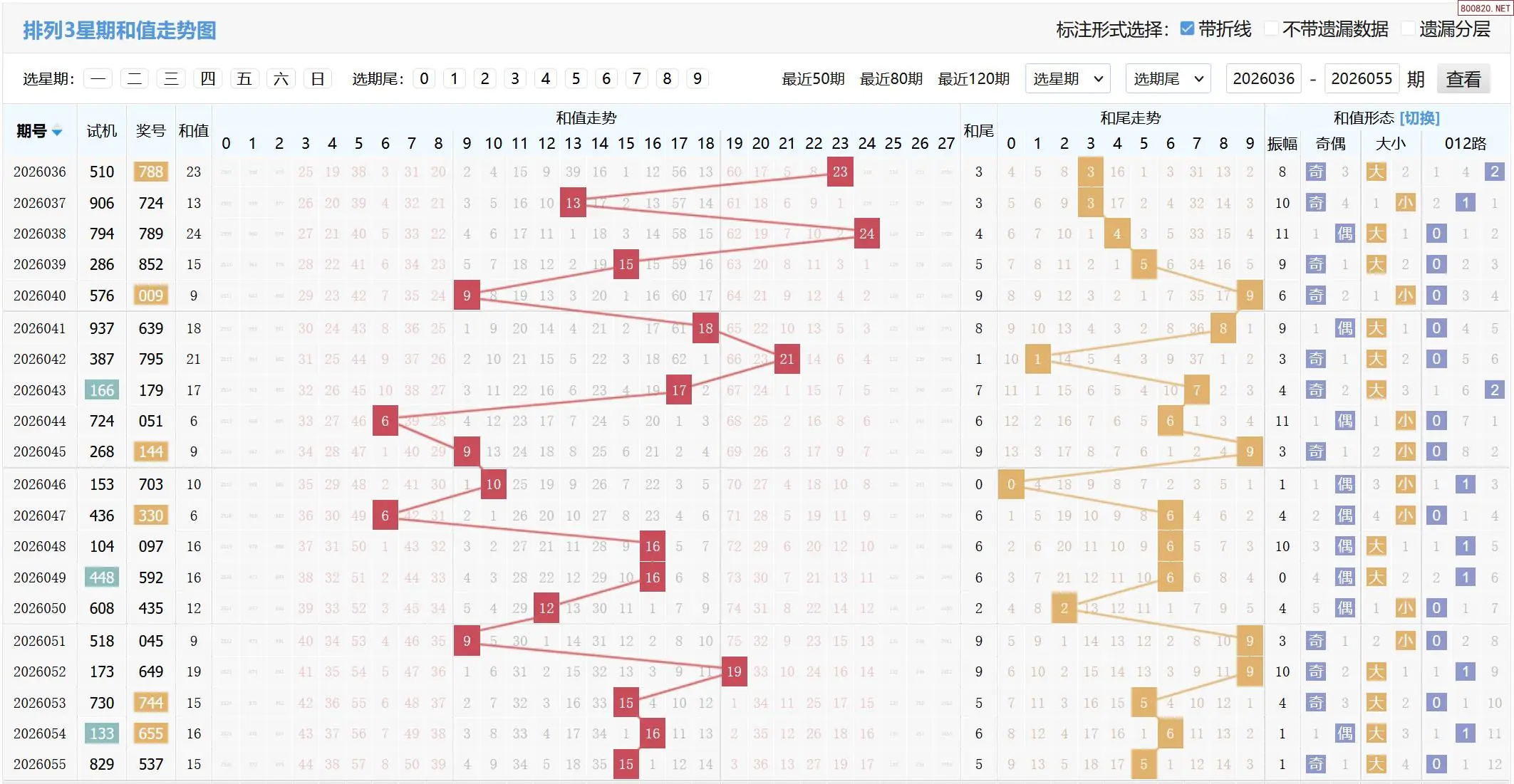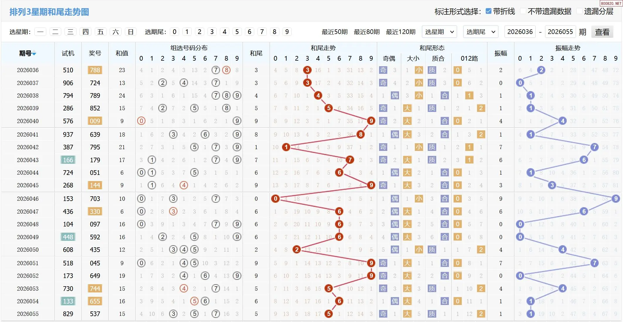 2026056期体彩P3基本走势图如下:
