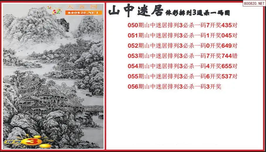 2026056期山中迷居体彩排列3通杀一码图(原创)