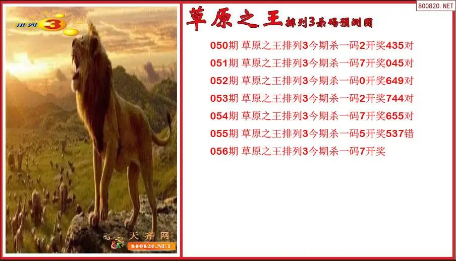 草原之王2026056期排列3杀号预测图(原创)