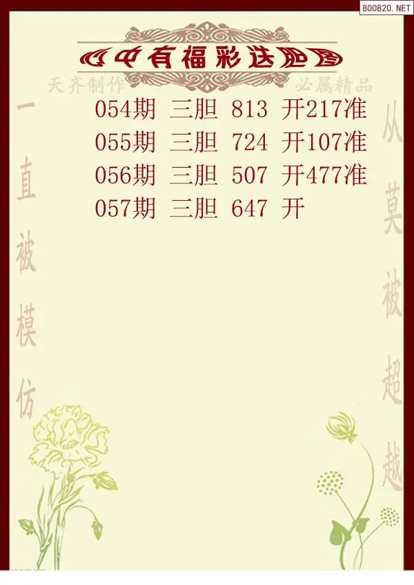 2026年057期心中有福福彩送胆图谜(天齐网原创)