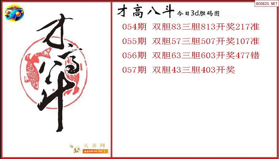 才高八斗2026057期今日3d胆码图(原创)