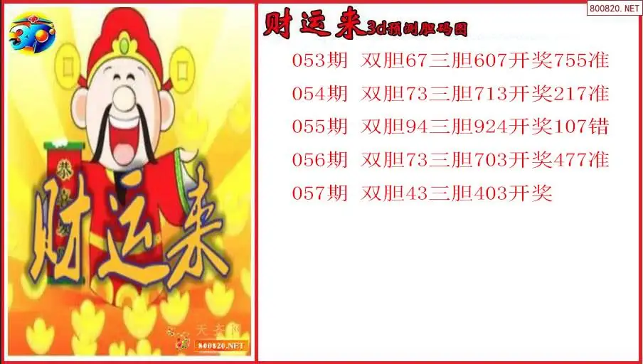 财运来2026057期3d预测胆码图(原创)