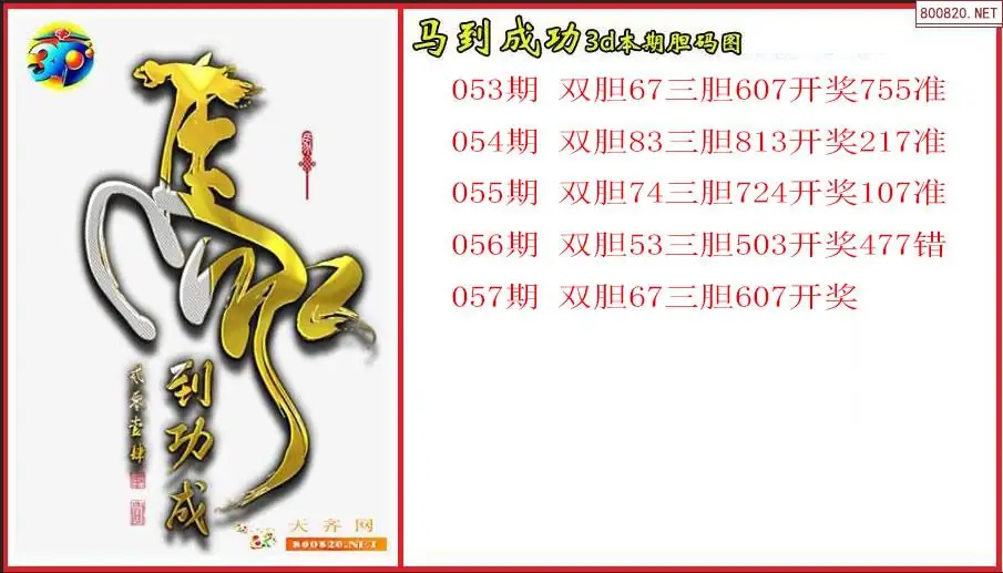 马到成功2026057期本期3d胆码图(原创)