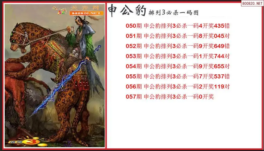 2026057期申公豹排列3必杀一码图(原创)