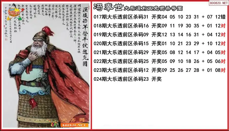 冯奉世2026024期大乐透前区免费杀号图-原创