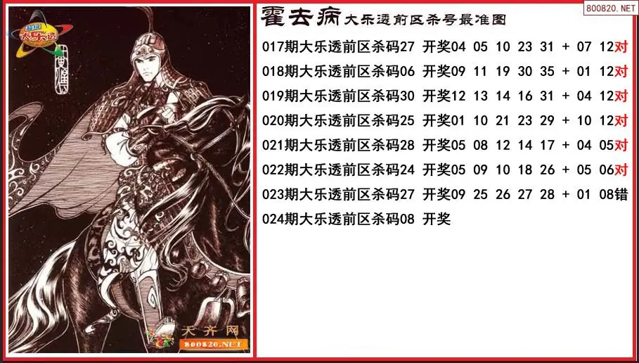 霍去病2026024期大乐透前区杀号更准图-原创