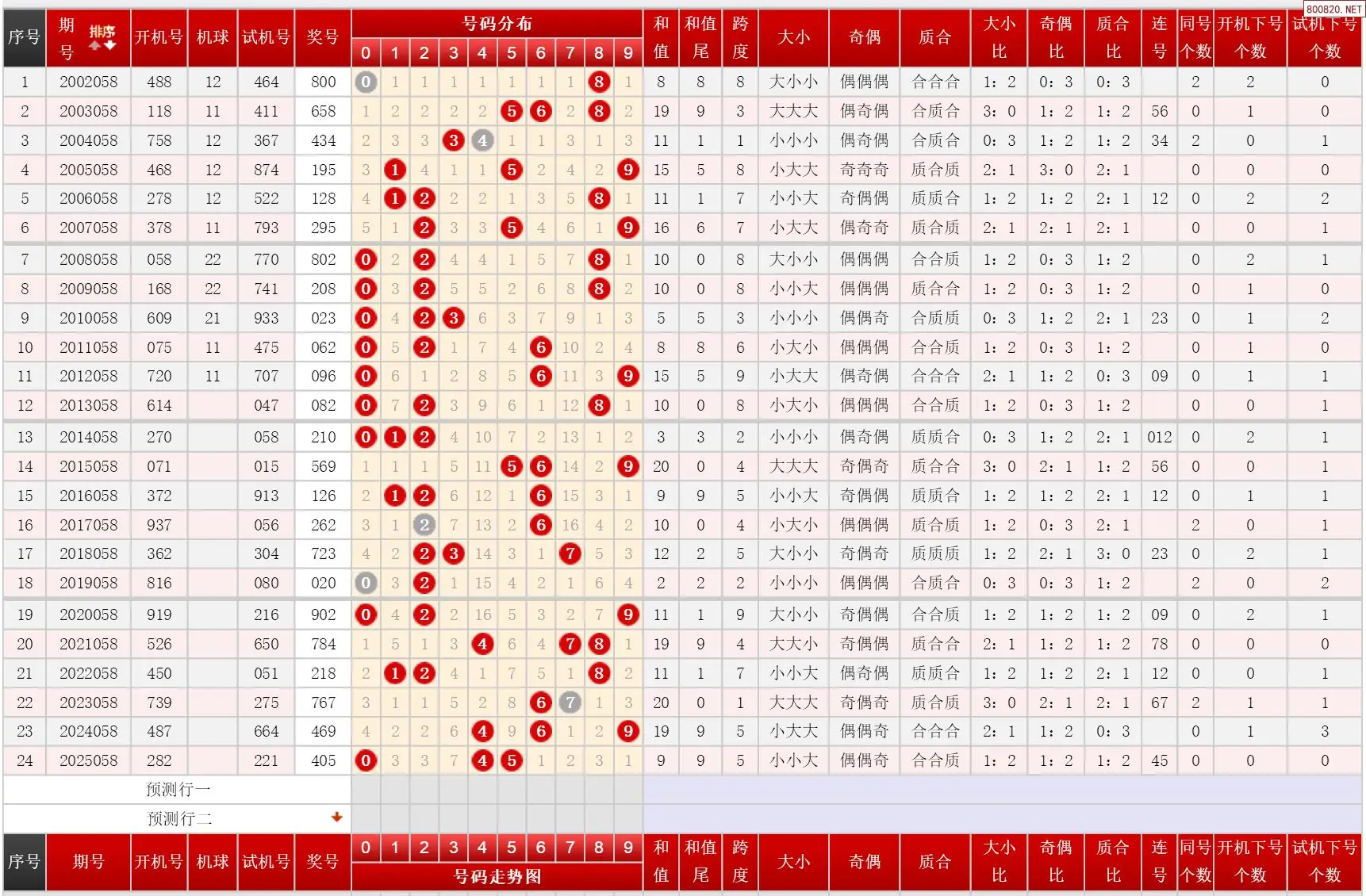 058期福彩3D历史同期对比图表+近期走势图分析