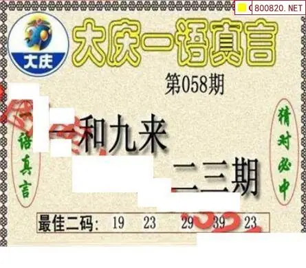 大庆图26058期大庆五码+一语真言黑胆3d图谜