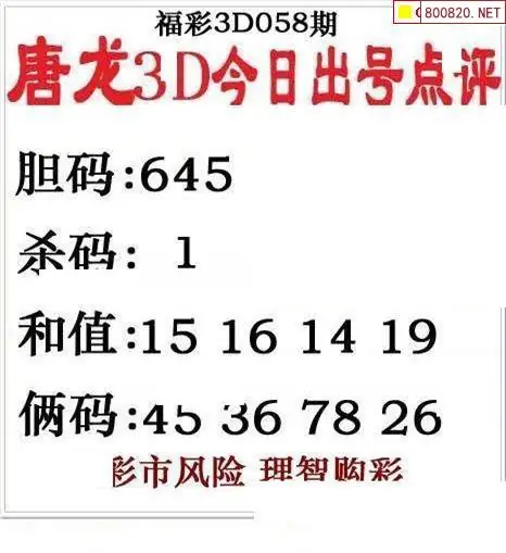 唐龙图26058期唐龙3d今日出号点评图迷