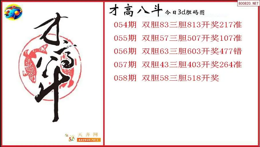 才高八斗2026058期今日3d胆码图(原创)