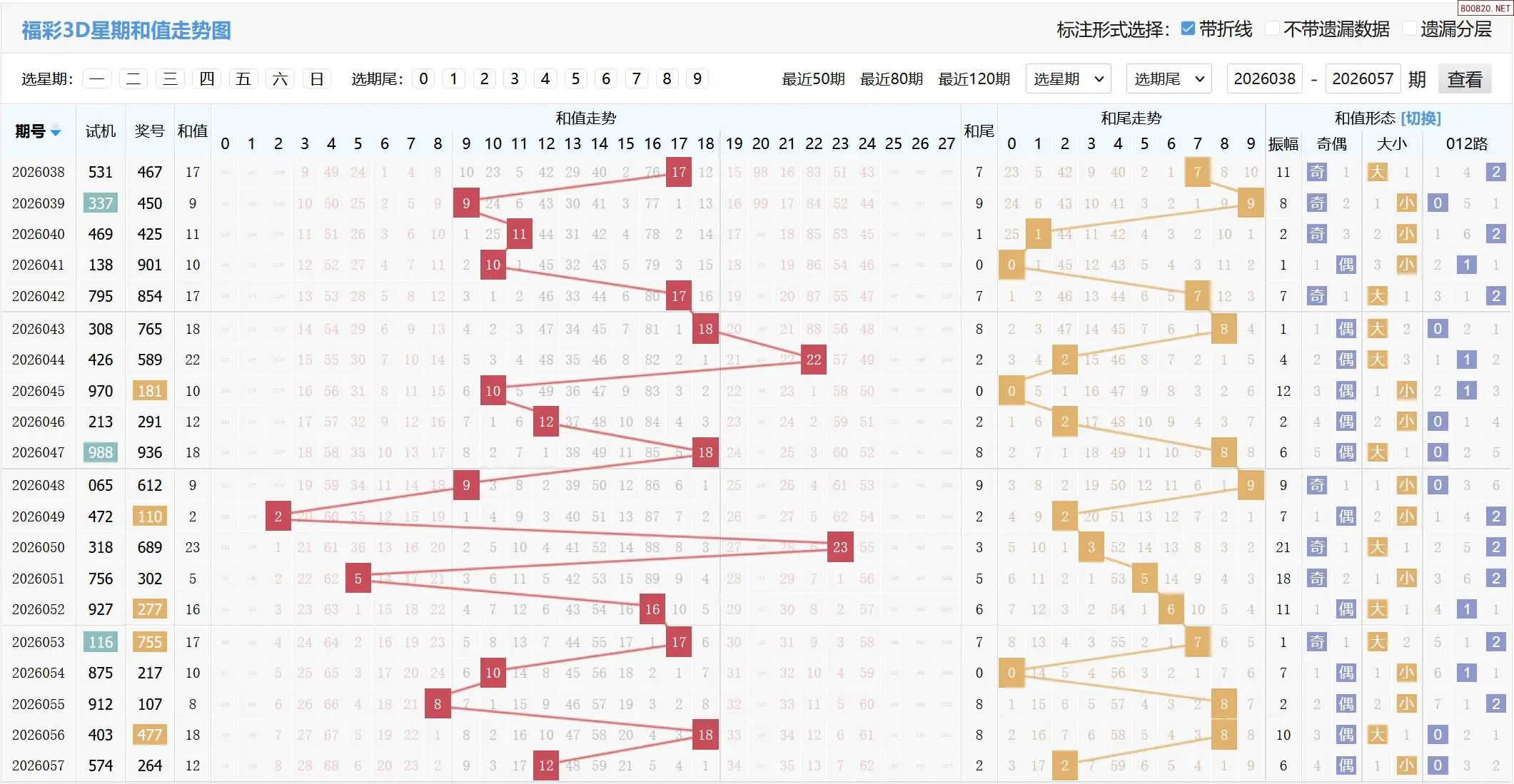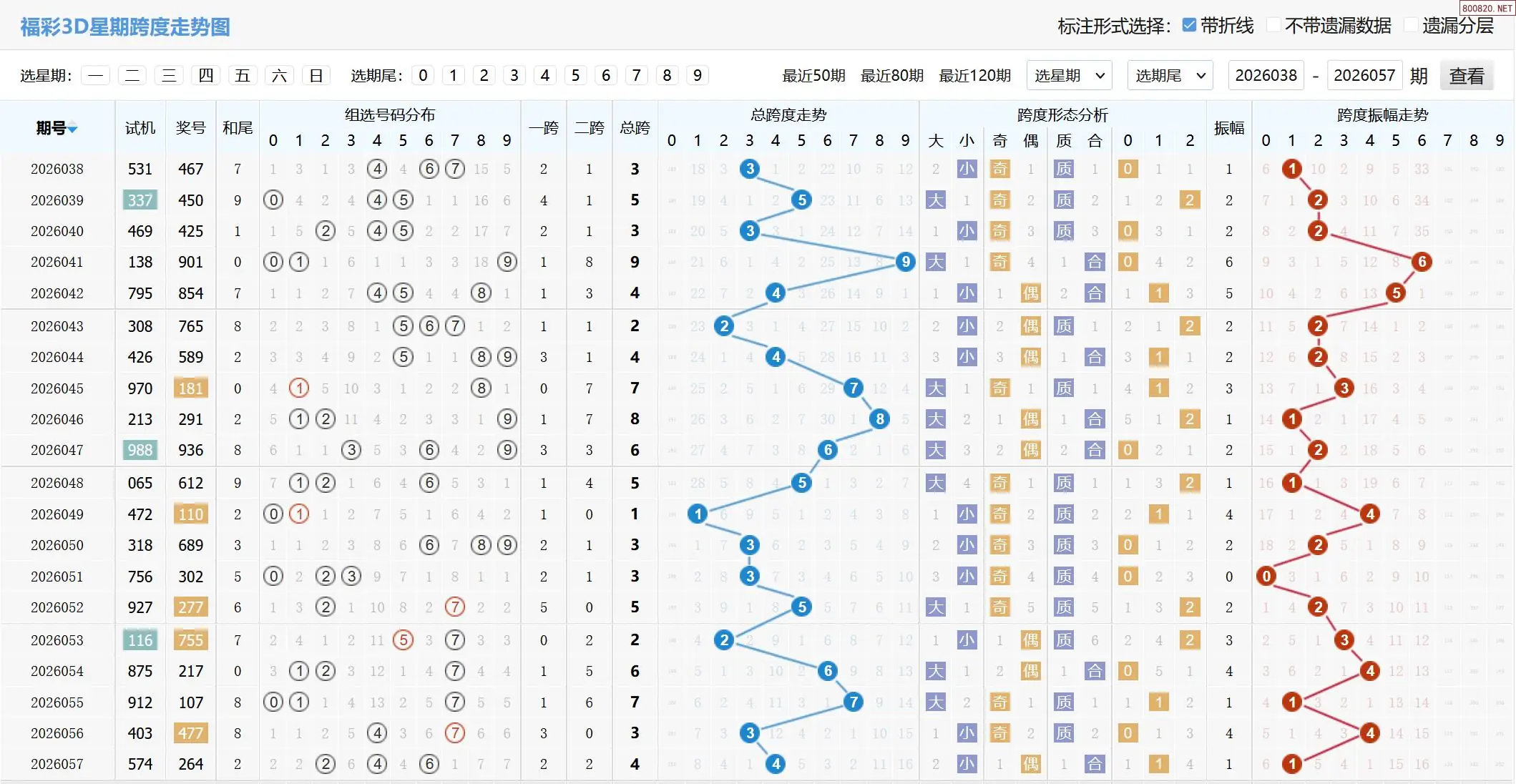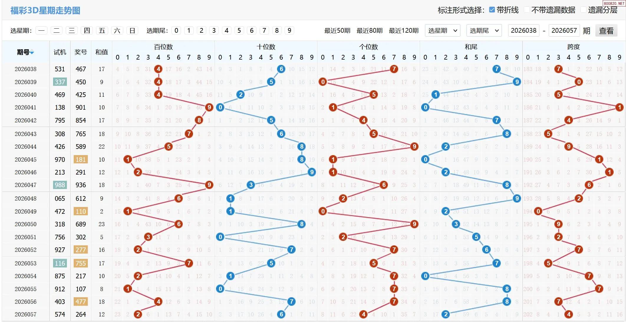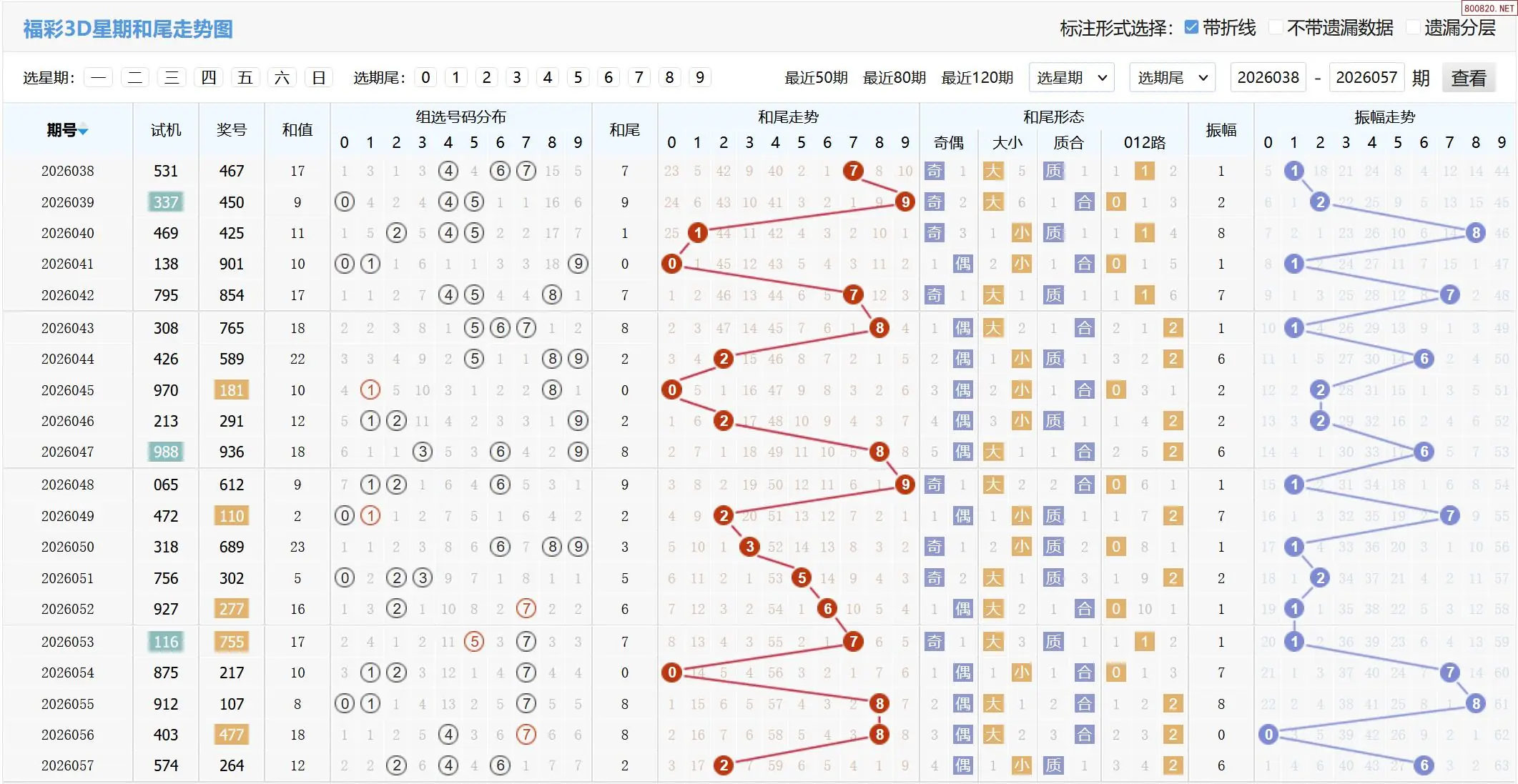 2026058期福彩3D基本走势图如下: