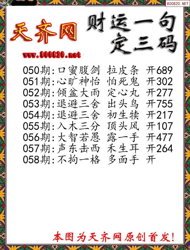 058期财运3D一句定三码字图谜