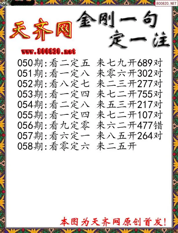 058期3D福彩金刚一句定三码字图谜