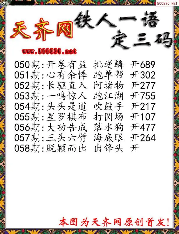058期3D铁人一句定三码字图谜
