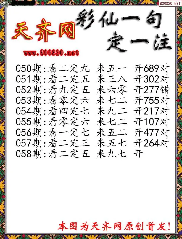 058期彩仙一句定三码3D字图谜