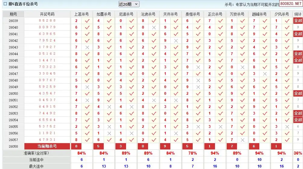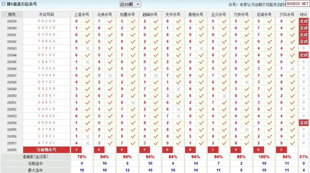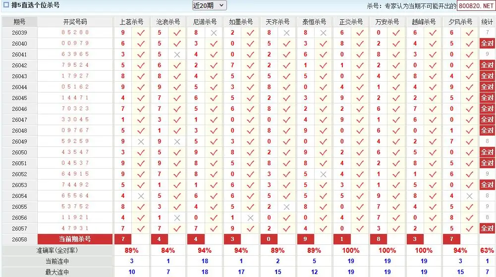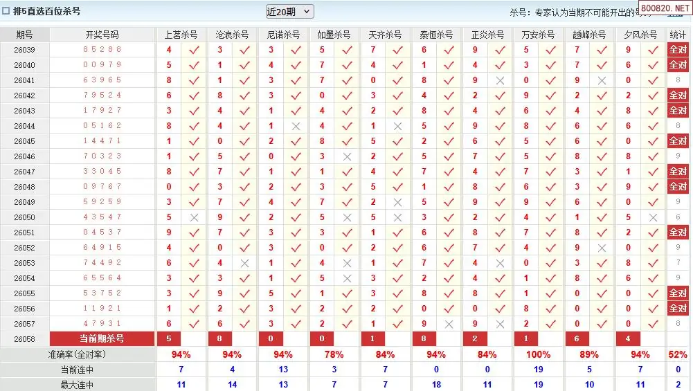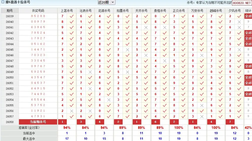 澳客彩票26年体彩P5058期十大大专家杀号