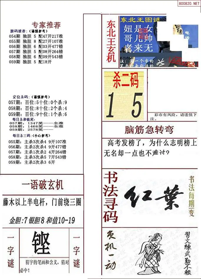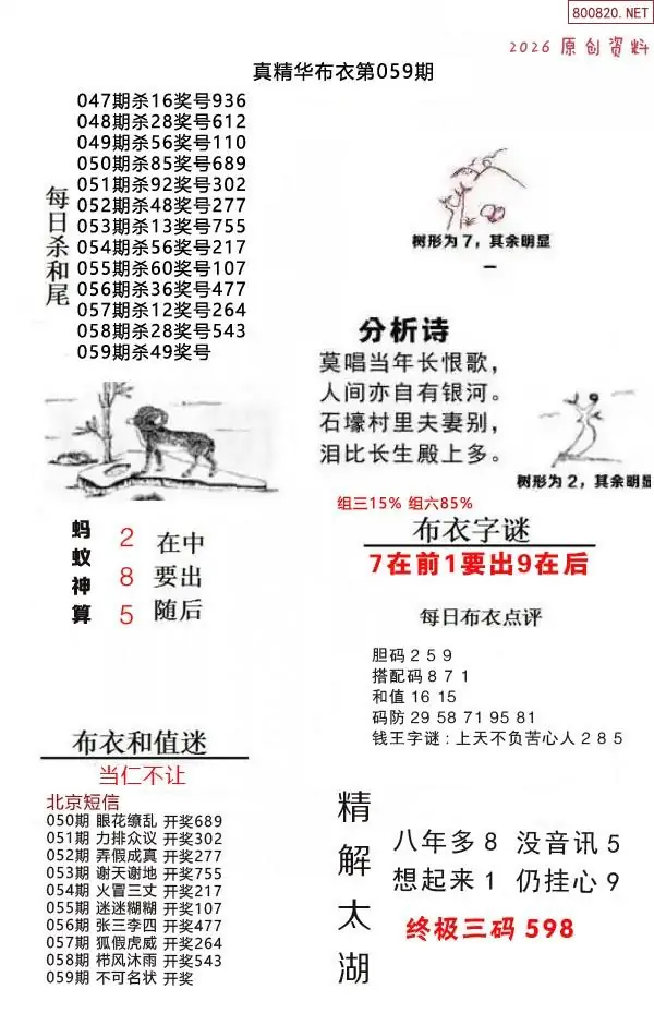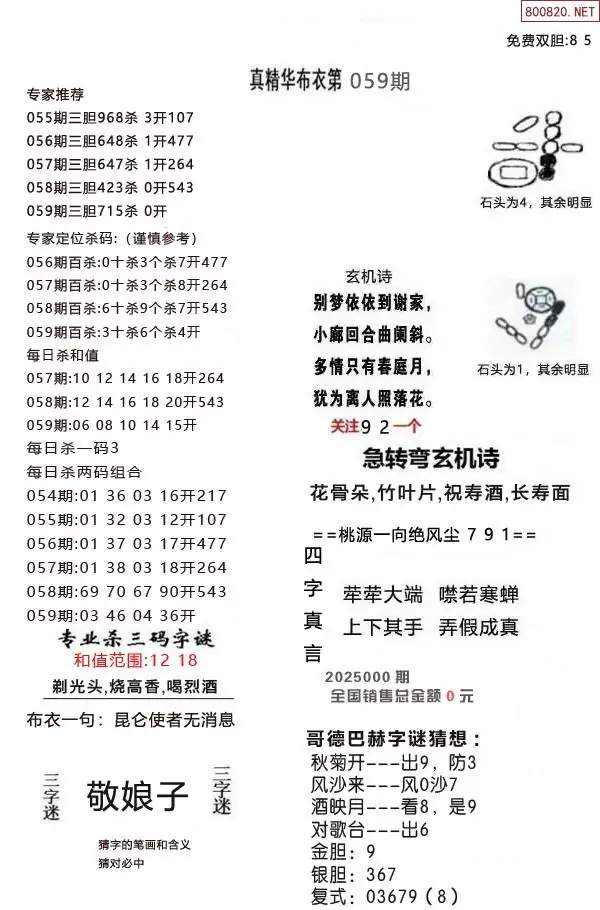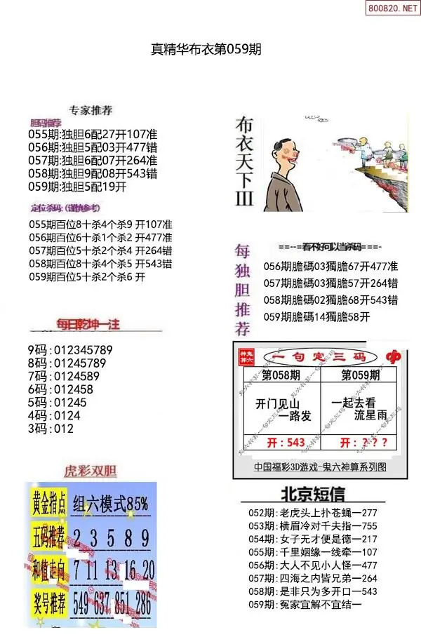 布衣图059期布衣定位杀+布衣神算图迷