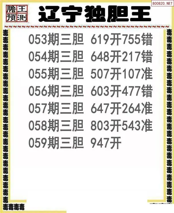 26059期辽宁独胆王三胆图谜