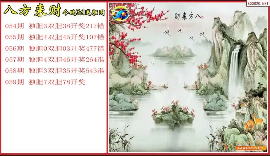 八方来财2026059期今晚3d送胆图(原创)