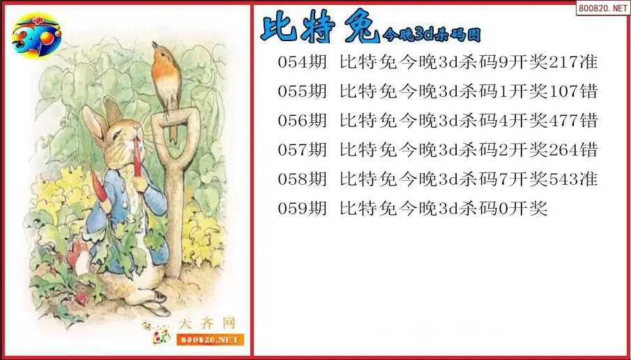 比特兔2026059期今晚3d杀码图(原创)