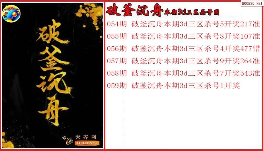 破釜沉舟2026059期本期3d三区杀号图(原创)
