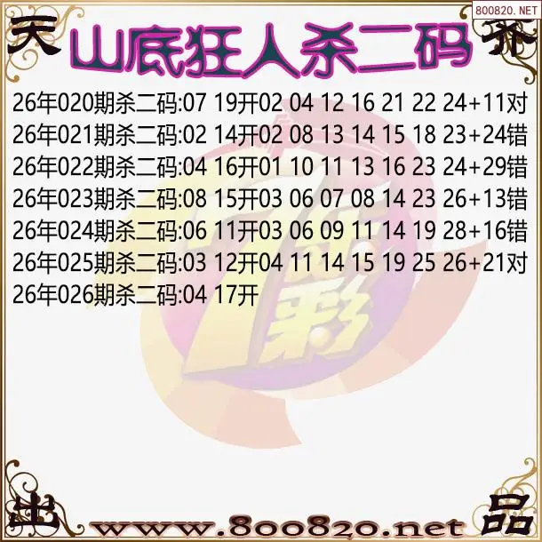 山底狂人26年026期七乐彩杀号图谜