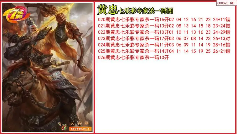 黄忠2026026期七乐彩专家杀一码图