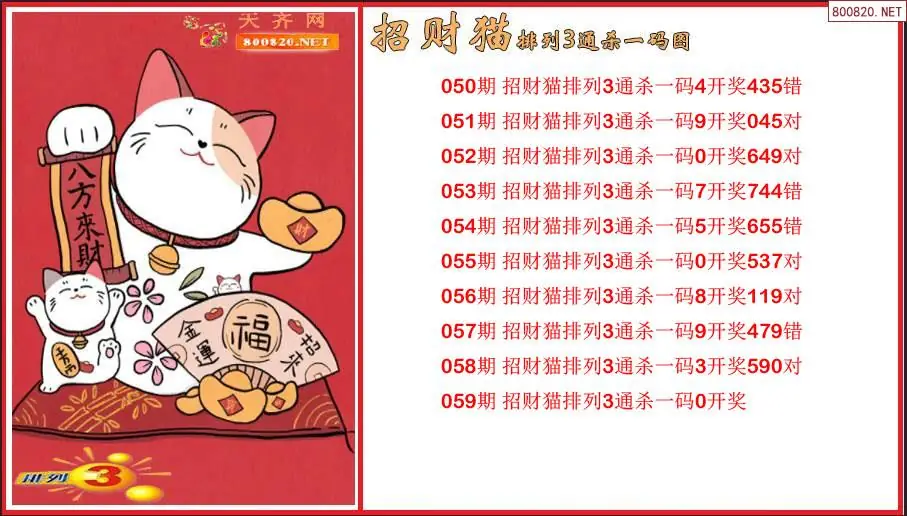 2026059期招财猫排列3通杀一码图(原创)