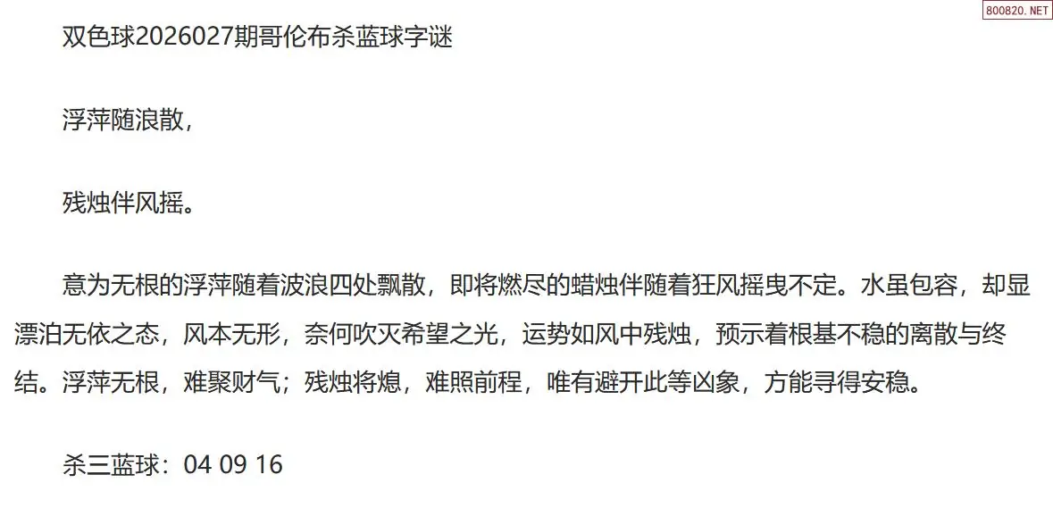 双色球26027期白玫瑰定蓝球字谜