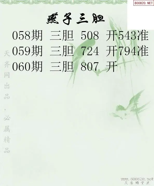 26060期燕子三胆3d胆码图谜-天齐原创
