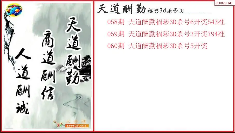 天道酬勤2026060期福彩3d杀号图(原创)